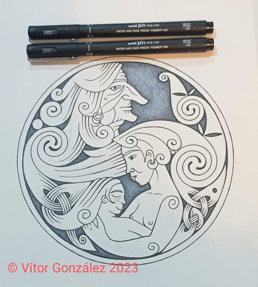 En La Vieya, Aique Fernandi anova la imaxe de la mitoloxía asturiana llevándola a los sos raigaños y, al empar, a los nuestros díes. Desendolcándose la narración nuna Asturies que podemos imaxinar a unos pocos quilómetros d’Uviéu o Xixón, onde pervive una mitoloxía rural yá cuasi escaecida por nós. La portada d’esta interesante novela inclui una de les míos illustraciones onde pretendí espeyar, en parámetros célticos, una adaptación de Les 3 Edaes de la Muyer de Klimt.